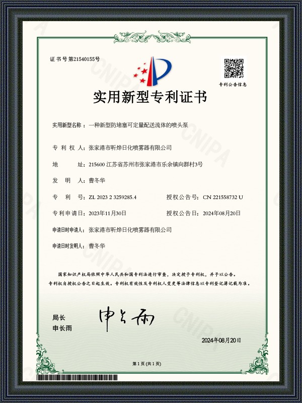 Zhangjiagang Xinye Chemical Sprayer Co., Ltd. fue fundada en el año 2006. La empresa tiene tres bases de producción: ①Sede de Zhangjiagang ②Sucursal de Zhangjiagang ③Sucursal de Huaian; En total cubre 100,000 metros cuadrados y 250,000 metros cuadrados de áreas de construcción. Es una empresa con una fuerte fuerza técnica, con más de 600 empleados, incluyendo 60 gerentes senior y casi 100 empleados en gestión de calidad y desarrollo tecnológico.