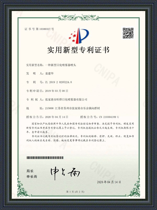Los jefes de rociadores producidos por la compañía son muy reconocidos en todo el mundo. También se han vendido no solo en China sino en el extranjero. Mientras tanto, la compañía ha aprobado la certificación del sistema de calidad ISO9001-2008. La compañía estableció su sede en la zona de desarrollo económico de Le Yu en la hermosa ciudad de Zhang Jiagang, que también se conoce como la perla oriental.